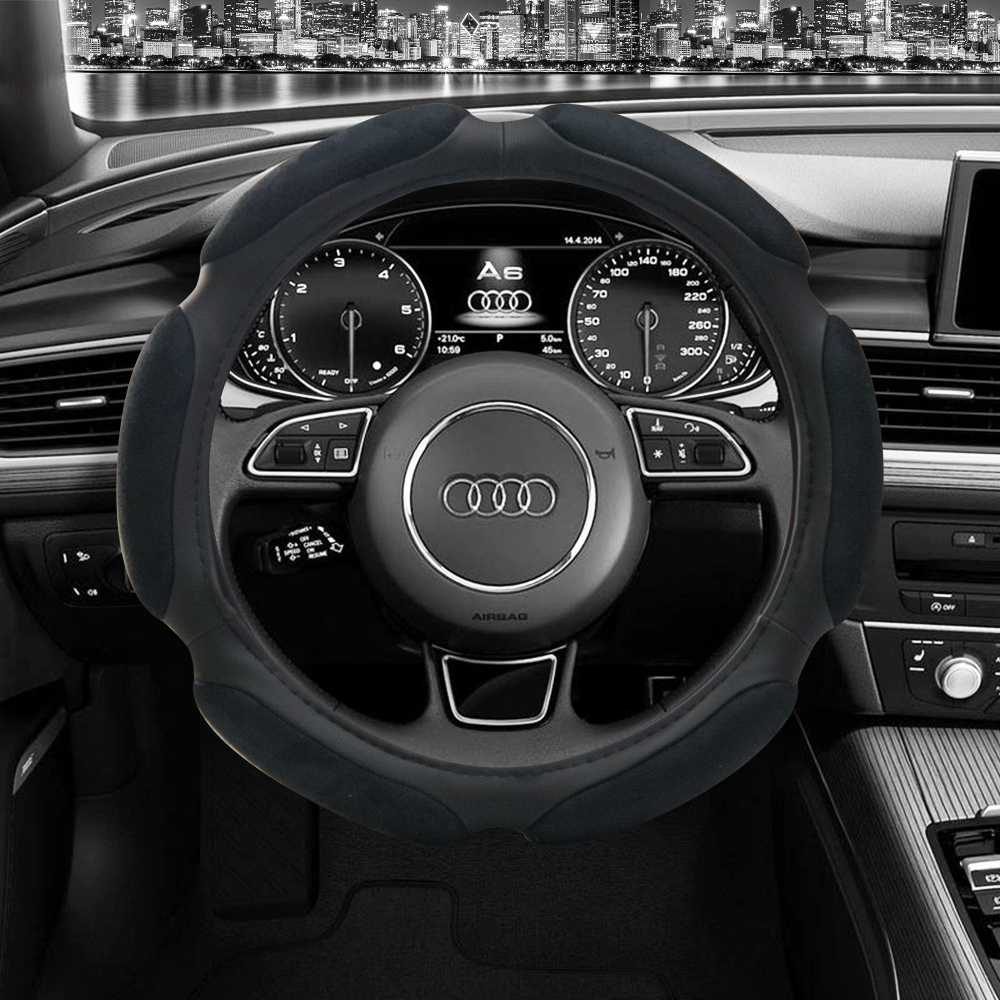 Бархатистая алькантара по внешнему виду очень похожа на замшу. Материал не выгорает от солнечных лучей, сохраняет свой цвет. Высокая износостойкость позволяет оплетке сохранять свой первоначальный внешний вид на протяжении долгого времени.