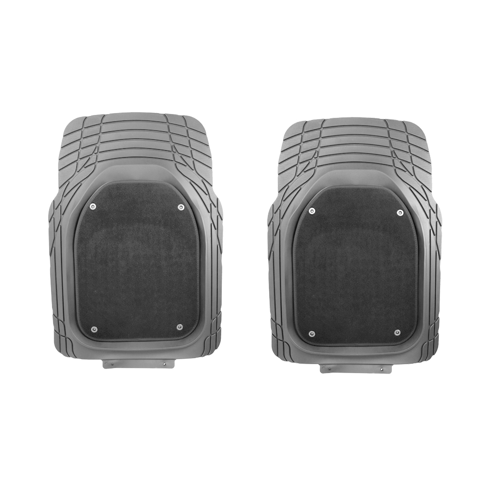 Резиновые шипы на тыльной стороне коврика крепко фиксируют его на полу, не позволяя сдвигаться под педали. Ворсовое покрытие коврика не дает обуви скользить и обеспечивает надёжный упор ногам водителя.