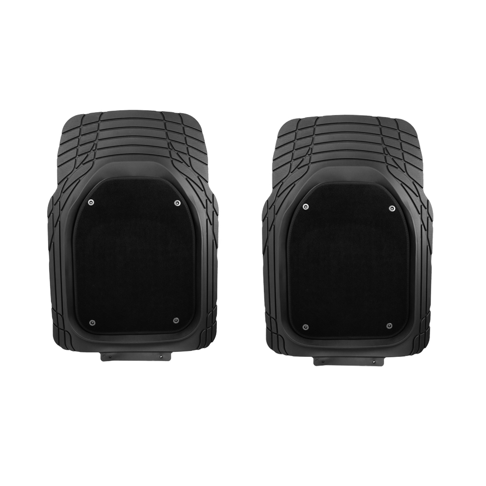 Резиновые шипы на тыльной стороне коврика крепко фиксируют его на полу, не позволяя сдвигаться под педали. Ворсовое покрытие коврика не дает обуви скользить и обеспечивает надёжный упор ногам водителя.