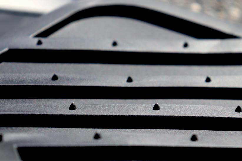 Шипы на тыльной стороне коврика крепко фиксируют его на полу, не позволяя сдвигаться. Крупный рельефный протектор коврика не дает